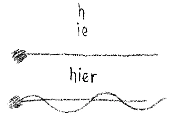 Just to show you that anthroposophy is truly not something that just rambles and rambles in vagueness, but that it enters into the very concrete facts of the world, I would like to give you a small example where there is also a will impulse. This example is taken from language. We have - I will choose a characteristic word, I could also choose another word - we have the German word “hier”. I say: “The box lies here.” What actually happens in the human organism when it comes to pronouncing the word “hier”? The first thing that happens is that what lives in the breath is first grasped in the subconscious. And this, what lives in the breath, is now the thought. The thought lives in the breath. We only have a real mental image of the thought when we know, from anthroposophical knowledge, that the thought can really live in the inhaled air, that it is a force that can act on the inhaled air. Only when we cannot go into these details do we come up against all the difficulties of psychology, taken physically. If we believe that thought can directly move a bone, that is, can have such a robust effect on physical matter, we cannot get by. But if we know that thought is something that is transmitted in a roundabout way through the warmth element into the air element, then what is stimulated there is continued into the rest of the organism, and we begin to grasp what is there with an impulse of will. So we can say: First of all we have the experience of breathing. This experience remains unconscious. Only the insight characterized here can transcend it. Then the second element is added: we inwardly experience that which now continues out of the breathing process into the liquid element of the organism. We experience that which signifies a direction in the speech organism. In the arm, it would mean an outstretching of the arm. We perceive this in the i. So we perceive the continuation of the thought-air into the watery element, so to speak the stretching movement. We see through imagination the transition from the breathing movement into the stretching movement. And then this stretching movement is formed in the right. If I were to say only “here,” I would have to draw it: 1st breathing process 5, 2nd stretching movement ie (the horizontal is drawn). But if I now draw the stretching movement as it is experienced unconsciously when I pronounce “here,” I must draw it like this: I perceive the breathing process, perceive the direction of the stretching, which is not carried out, but rolls along in the r. And then I have really experienced inwardly what is present as a volitional impulse when I pronounce the word “here”. In this way, we can follow the impulses of will that express themselves in language when we use our imagination to look into the whole weaving and ruling of the soul that permeates the physical body and the etheric or formative body.