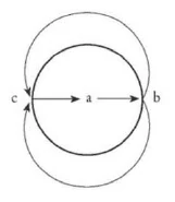 Die am Himmelsgewölbe beobachteten Nebelflecken, die in Spiralen verlaufen, die aus einem Wirbel hervorgehen, sind der Ausdruck des Wirkens der Urkraft durch spiralförmiges Hervortreten aus sich selbst. Die Urkraft bleibt immer dieselbe, sie ist ewig eins. Das beruht auf dem Gesetz, dass nirgends eine Leere möglich ist. Alles, was die Urkraft ausströmt in den Weltenraum hinein, das heißt alle Kräfte aus ihrem Innern, die sie durch ihre Gedanken ihrem eigenen Willen folgend hinaussendet an ihre Peripherie zur objektiven Gestaltung, alle diese Kräfte müssen dem Gesetz zufolge, dass es keine Leere gibt, wieder einströmen in das Zentrum der Urkraft. - Wie dieses Gesetz wirkt, können wir am leichtesten beobachten an einer kreisförmigen Wasserfläche. Bringen wir bei dieser Wasserfläche eine Bewegung aus dem Mittelpunkt nach einer Seite zustande, dann strömt zunächst das Wasser aus dem Mittelpunkt aus in einer Strömung a>b. Dann aber strömt zugleich das ausströmende Wasser der Peripherie entlang nach beiden Seiten und die Ausströmung \(a \rightarrow b\) ergänzt sich durch eine Einströmung \(c \rightarrow a\). Es entsteht also folgende Bewegung: