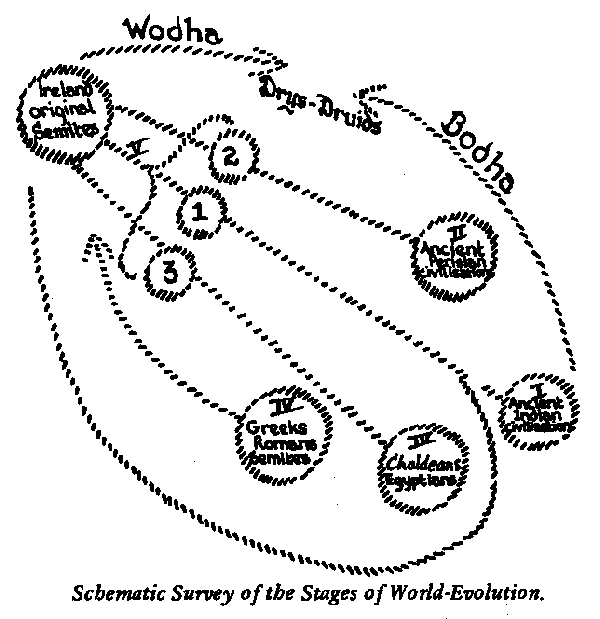 Every Condition of Form again goes through 7 x 7 stages of development; for instance our present Fourth Condition of Form (of the Mineral Kingdom, within the Fourth Planet, the Earth) goes through the so-called 7 Root-Races (ages or Main Periods of Time) and again through the Cultural Epochs of our present Fifth Root-Race (Post-Atlantean Age).