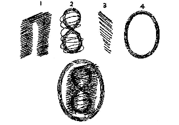 If we were to draw a rough diagram of what man would have been like—(see following diagram)—we should have an Imagination picture of what the Spirits of Form created as an Imagination of man. But it would also be permeated with what remained over in man from the creative working of the earlier hierarchies. We should have to show it in our diagram as permeated first of all with what was left in man from the Spirits of Movement, the Spirits of inner Movement (2). That would reveal itself to us as what we have described in Knowledge of the Higher Worlds with the words “Inspired Knowledge.” For these movements would only be recognisable as Inspiration. This means that we should have first the complete man, consisting of Imagination, and then we should have as well movement—Inspiration. And what the Spirits of Wisdom give would be Intuition. This would be a positive inner content with which all the rest would be in a manner filled out. We must put here (3) Intuition, that is to say, immediate being—Beings. And the whole we would behold as proceeding out of the cosmos and enclosed in an egg-shaped aura which would be the outcome of the working of the Spirits of Will. Such would be the super-sensible nature of man, consisting of contents which would be accessible to super-sensible knowledge alone. Fantastic as it may appear, it is the real Man.