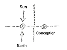 This particular stage of our life is nothing but the reflection of a real event which takes place before conception and which is connected with human life. In the final period of our life between death and a new birth, but also at the time of physical conception, we are clearly in the spiritual world. Something is continually happening to us on a spiritual level and conception is nothing but a reflection, maya, of this happening. But the event which takes place in the spiritual world is one which occurs between sun and earth in such a manner that the female element is influenced by the sun and the male element is influenced by the earth. Thus the event of conception mirrors the interaction between sun and earth.