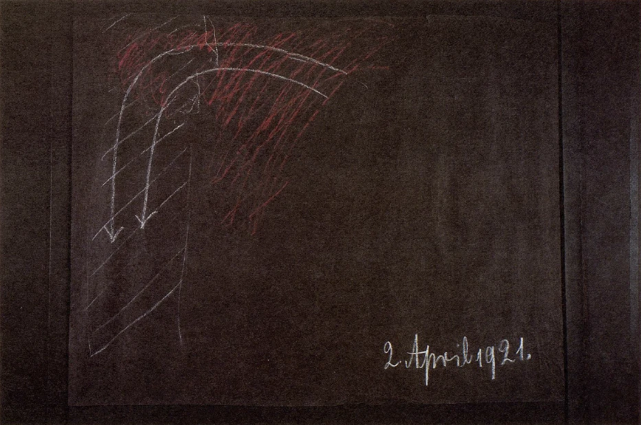 [ 7 ] In people who have such clairvoyant consciousness today, the existence of this clairvoyant consciousness — those who should have such clairvoyant consciousness in this auditorium, for example, may forgive me for telling them this truth — is based precisely on the inadequate training of the inadequate organs of the intellect. It is quite a common occurrence that we can meet people in our world today who have a certain clairvoyant consciousness but who actually have very little of what we now call scientific understanding. And as true as this is, it is also true that such clairvoyant people can now come to record or recount certain things that they themselves bring forth through their knowledge, and that in these accounts, in these records, there live thoughts that are much more intelligent than the thoughts of those people who, without developing clairvoyance, work with the very best tools of the intellect. It can happen that, from the point of view of present-day science, stupid—forgive the expression—stupid clairvoyants produce thoughts which do not make them any smarter, but which are smarter than the thoughts of the most authoritative scientists of today. This fact is already quite evident. And what is it based on? It is based on the fact that such clairvoyant individuals do not need to exert their thinking organs in order to arrive at these thoughts. They create the relevant images from the spiritual world, and the thoughts are already there, already complete, while other people who are not clairvoyant and can only think have to train their thinking organs in order to form their thoughts. Schematically drawn, it would be like this. Let us assume that such clairvoyant individuals bring something out of the spiritual world in all kinds of images; this here (see drawing, red) is something that comes out of the spiritual world through such individuals. But inside there are thoughts, there is a network of thoughts. The people concerned do not think this, but they see it, they bring it out of the spiritual world; they do not need to strain their thinking organs.