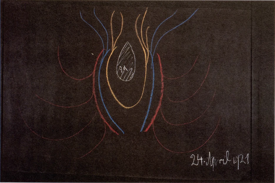 The etheric body, the astral body, and the ego (see above, blue, yellow, and shape in the middle) are present there too. But the ego no longer experiences anything of the cosmic element here within the human being. It only has a dim experience of its own existence, of its own immersion in the isolated human organism. Therefore, when this purely intellectual ego goes into its surroundings in sleep, it takes nothing along. The fact that it takes along nothing is the reason that at most reminiscences, dream images of an unrealistic kind, can arise in the human being, and that this ego can in no way be permeated by anything from the cosmos. Basically, from the moment of falling asleep until awakening, the human being experiences nothing of significance, because his whole manner of experiencing is calculated for the isolated human organism, which in turn affects the ego with those forces that have nothing to do with the cosmos. This is why the ego is dulled from the moment of falling asleep until waking up.
