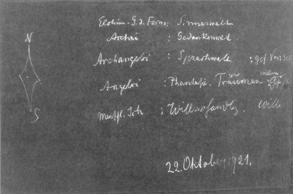 [ 9 ] Now, however, when we have advanced around us to the world of the Archai, it is also possible for us, with the help of this world of the Archai, to look back on what we have already experienced from higher hierarchies in previous lives between death and a new birth. We become aware of how, behind the archai within this world, there lie the beings called Elohim in the Bible, which you will find in my “Secret Science” called the spirits of form. We can therefore say that by looking out into the world through our senses, we are actually looking into the world of the spirits of form (see summary on page 40): the sensory world.
