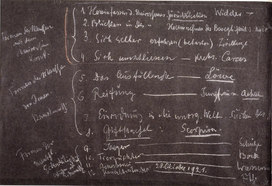 As I said, we have to take the point of view of the ancient Greeks to do this, for today we can no longer start with the Ram; we have to start with the Fishes. We have been in the sign of the Fishes for centuries now, and this marks the time of transition to human intellectual development. But if you go back to the time when it was right to start with the Ram and the zodiac could be seen the way the ancients saw it, you have not much more than Archer, Goat, Water Carrier and Fishes, or the occupations of the hunter, animal breeder, tiller of the soil and trader. Today we live in the age of the Fishes, during which the whole of our modern industrialized civilization has developed. Going back to the time of the Ram, we still find the four honest occupations—through modified to some extent and more complex—which place human beings in the world of nature.