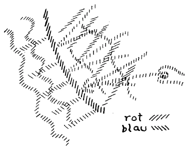 Let us say that here we have the boundary between the conscious and the unconscious, red representing the conscious, blue the unconscious. If a person sees something belonging to the outer world or to himself, for instance, if with his own eye he sees another Man's eye, then the visible rays which go out of his eye into the other Man are thrown back, and he experiences it in his consciousness. What he also bears of his own being beneath the threshold of consciousness he experiences in his astral body and his ego, but not in the ordinary waking state. It remains unconscious and essentially forms the actual content of the etheric and the physical bodies. The etheric body is never recognized at all by ordinary consciousness; it recognizes only the external aspect of the physical body. As I have mentioned in the past, we must plunge beneath memory to perceive the primal source of evil in human beings, but then something else can also be perceived, namely, an aspect of Man's connection with the cosmos.