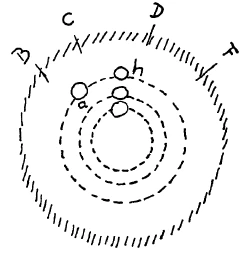 You can roughly follow the zodiac signs if we relate them to today's language by setting B, C, D, F, and so on as the constellations of the zodiac. You can follow them by perceiving the planetary revolution as the letter h. h is not an actual letter like the others, but rather represents the revolution, the orbit. And the individual planets in their revolutions are always the individual vowels that stand in front of the consonants in some way. So think of the vowel a standing here (see drawing on page 109), and you have the a sounding together with B and C, but you have the h inside each vowel. When you pronounce it, you will feel it: ah, ih, eh, the h is inside every vowel! What does it mean that the h is inside every vowel? It means that the vowel vibrates in the cosmos. The vowel is not silent; it vibrates in the cosmos. And this circling, this vibration, is expressed in the h that is mysteriously contained within each vowel. So think about it: somewhere in language, a vowel harmony was expressed: i a o, let's say. What is expressed by this? It expresses something that is the world effect of three planets. If you add a consonant to something like this, Josua, if you add an s inside, it means that you are not only expressing the vocalization within the planetary sphere, but also the effect that the planets contained in io a experience in their movement through their relationship to the constellation S. This means that in ancient human civilization, when a name of God was pronounced vocally, a planetary secret was expressed. The deed of a divine being within the planetary world was expressed by the name. If one expressed a name of God by having something consonantal in it, the deed of the divine being in question was thought up to the representative of the fixed starry sky, up to the zodiac.