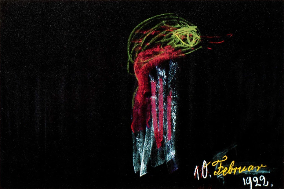 [ 14 ] The other thing is what I called a kind of shock that was inflicted on people. Now, consider how shock affects people: they freeze. And there can be a shock that really causes a kind of paralysis of the whole person. In people as they are in ordinary life, where they can run around—the frozen, cataleptic person cannot run around, their muscles are frozen—in people who are not frozen, the rest of the body absorbs this eternal element (white with red). The spiritual-soul element, the eternal, is absorbed into our blood, into our muscles below. This in turn prevents it from being perceived. It cannot rise up into the brain; it is absorbed down below. So it cannot be perceived, but it emerges freely and independently when the muscles freeze.