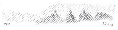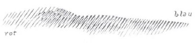 [ 31 ] Wenn ich das in einem etwas gewagten Bilde graphisch darstellen sollte, was da eigentlich ist, so möchte ich es so zeichnen: Wir haben bei Shakespeare das Bild so, daß die Geschehnisse durchaus erdenmäßig weiterlaufen (siehe Zeichnung, blau), daß das, was er aus der früheren Zeit, in der noch das Geistige gewirkt hat, heraufnimmt, [daß das] weiterwirkt (rot), und daß es überläuft in eine Gegenwart, die dann eben die Tatsache des weltgeschichtlichen Verlaufs bildet.