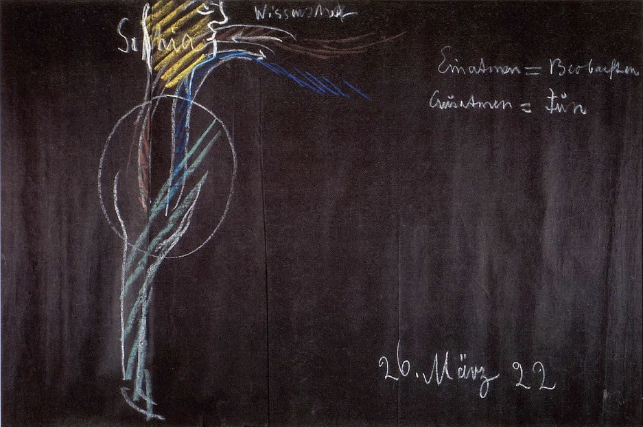 There was once a time when man perceived more strongly this upwelling of breathing into his head. This passed over into the time when man still perceived confusedly, when he still perceived something of the after-effects of the gnome-like hammering, the Undine-like surging, the nymph-like tumbling, when he still perceived something of the connection of these after-effects with the perceptions of sound, light and color. But then all that he still perceived of the breathing process was lost. And of those people who still had a trace of consciousness that breathing once introduced the spiritual-soul of the world into man, what now remained, what was established from sensory perception in connection with breathing, was called “Sophia”. But breathing was no longer perceived. So the spiritual content of breathing was killed, or rather, paralyzed by sensory perception.