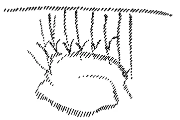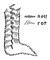 [ 36 ] If we have our foot here and our bone here, then the soul has the peculiar property of breaking at the bone (see drawing, red), so that we carry our bones within us in such a way that they are empty of the soul. It is not inside, but it radiates back into the organism.
