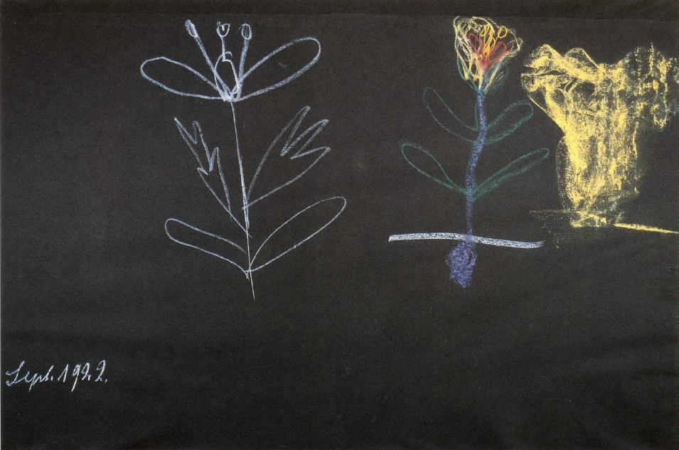 There you have two extremes: a plant that has time to differentiate into all its detailed parts, to develop roots, stem, leaves, flowers, fruit; and a plant placed in such conditions of nature that it has no time to form a root, with the result that everything about it remains indication only; it cannot develop stem and leaves, and is obliged to unfold rapidly and without definition the principle underlying the formation of petals, fruit and seed. Such a plant only just manages to take its place in the earth and unfolds with amazing rapidity what other plants unfold slowly. Think, for example, of the corn poppy. After slowly putting out its green leaves it can proceed to unfold its petals, then the stamens, then the jaunty pistil in the centre. But a mushroom must do all this very rapidly; there is no time for differentiation, no time for exposure to the sun, which would bring the beautiful colours, because the sun is absent during its brief period of development. In the mushroom we have a flower without definition; development has taken place far too rapidly. Here, too, there is fundamental unity. Two quite different plants are basically the same.