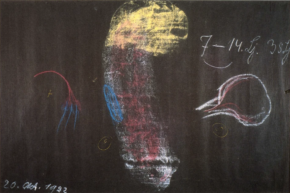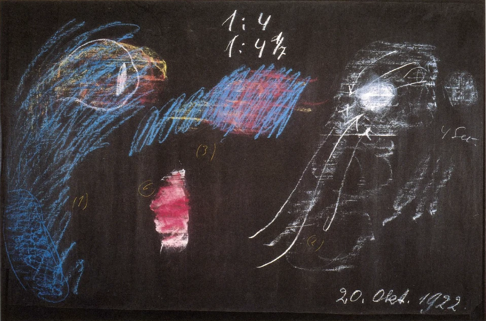 [ 31 ] Now the human being is inwardly very strongly exposed to the Ahrimanic forces with regard to everything that is subject to the slow rhythm, and very strongly exposed to the Luciferic forces with regard to everything that corresponds to the fast rhythm. And so you could also say, if you were to take a look at the wooden group: Everything Ahrimanic about it is set to the slow rhythm, which therefore hardens the forms and makes them pointed and stiff. In everything Luciferic, the fast rhythm is worked towards, which rounds everything because it runs faster, which therefore rounds everything, does not stiffen it, but makes it undulating. You can see from the plastic forms that we are dealing with a beating together in a ratio of three or four to one.