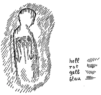 [ 8 ] Wenn ich das aufzeichnen will, so wäre also das so (siehe Zeichnung Seite 91), wenn man sich so die Erde vorstellte, so sagte man sich, wenn da der Mensch lebt, so ist er zu stark abhängig von diesem Erdenfleck, und man muß den Menschen dadurch heilen, daß man ihn innerlich befreit von der äußerlichen Abhängigkeit von diesem Erdenfleck. Das kann man dadurch, daß man ihn in Beziehung bringt zu dem umliegenden Kosmos, zu der äußeren Himmelswelt. Man sagte: Der Himmel ist dasjenige, was des Menschen Heimat war, bevor er hier auf der Erde war. Er paßt nicht recht auf die Erde herein. Man muß ihn heifen dadurch, daß man ihn in die richtige Beziehung zum Kosmos bringt. —- Und das tat man dann etwa in der Weise, daß man sagte: Man muß also den Menschen, weil zuviel Erdenwirkungen in ihm sind, weil gewissermaßen zuviel Schwerkraft und das, was mit der Schwerkraft zusammenhängt, in ihm ist, man muß ihn erleichtern; man muß die überirdischen Kräfte in ihn hineinbringen. — Man sagte sich: Überirdische Kräfte wirken in diesen oder jenen Pflanzenblüten. Also man bearbeitete diese oder jene Pflanzenblüten, indem man ihren Saft gewann. Man sagte sich; Diese Pflanze, die blüht zu einer gewissen Jahreszeit; sie blüht durch die Einflüsse des Kosmos zu dieser Jahreszeit. — Man erforschte nun, inwiefern der Mensch gerade durch diese Jahreszeit beeinflußt wird. Zu diesem Zwecke wurden ja in älteren Zeiten die Abhängigkeiten des Menschen von den Himmelserscheinungen in einer horoskopartigen Weise gesucht. Und man gab dann als Arzneien dem Menschen dasjenige, was seinen Ätherleib in eine allgemeine Schwingung brachte. Man sagte sich so: Wenn das der Mensch ist (siehe Zeichnung $. 93, rot), dann ist das sein Ätherleib (hell), und er ist an Pneumonie erkrankt aus dem Grunde, weil sein Ätherleib in der Gegend der Lunge zu stark der Erde zuneigt (blau), und weil die Erdenkräfte auf ihn zu großen Einfluß haben. Jetzt bringt man ihm eben Säfte von Pflanzenblüten bei, welche in ihn hineinwirken und welche diese Kräfte überwinden (gelb). Man führte ihm also Kräfte zu, die ihn in Zusammenhang brachten mit dem Kosmos. Dadurch strebte man an, den ganzen Ätherleib in richtige Schwingungen zu versetzen, damit die unrichtigen einzelnen Schwingungen ausgeglichen werden. Also man fragte sich immer: Was muß man mit dem Ätherleib tun?