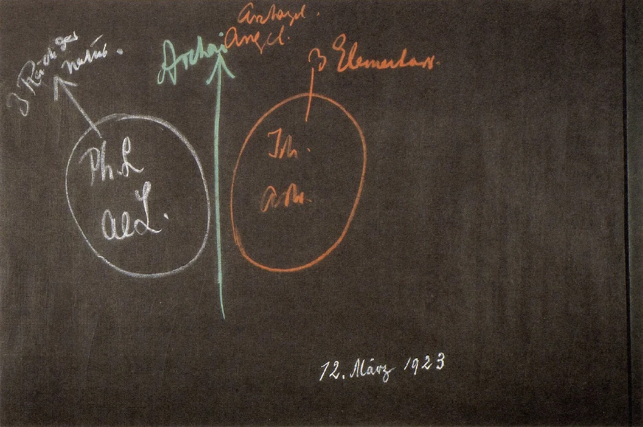 Goethe actually spent the whole first half of his life working on grasping his etheric body in the right way. And while we can, I would like to say, lead a relatively beneficial life if we come into a certain relationship with the world of the Angeloi and Archangeloi during sleep, the Archai must help us to bring sleeping and waking life together correctly. The physical body and the etheric body lead waking life for themselves through the forces of nature that are externally visible, which are in the three realms. The sleeping life is led in the right way when the human being lives in the elemental realms in the right way between falling asleep and waking up, and gains a relationship to the Angeloi and Archangeloi from these elemental realms. But a further one is necessary for man.