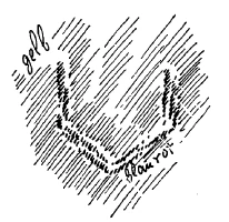 Daß die Natur überall nach solchen Dingen strebt, das können Sie sich ja versinnbildlichen. Sie wissen, nicht wahr, eine anständige Wespe hat vorn eine Art Kopf, dann eine Art Hinterleib und die Flügel. Das ist eine anständige Wespe. Aber es gibt auch Wespen, Sandwespen, welche so ausschauen (Zeichnung unten):