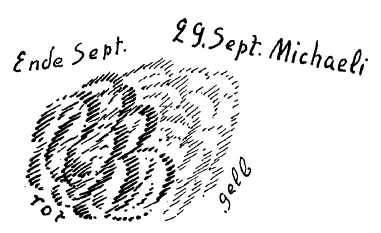 Following this breath even further, we finally arrive at the stage that occurs at the end of September. The exhaled forces begin to move back again, the earth begins to breathe in again. The earth soul, which was poured out into the cosmos, withdraws again into the interior of the earth. In their subconscious or in their clairvoyant impressions, the human souls perceive this inhalation of the earth-soul as processes of their own soul. The people who were inspired by the initiatory knowledge of such things were then able to say to themselves at the end of September: What the cosmos has given us and what has connected with our own soul power through the Christ impulse, we in turn allow to flow back into the earthly, into that earthly which has only served as a reflection throughout the summer, which has thus behaved like a mirror towards the cosmos, the extraterrestrial cosmos.
