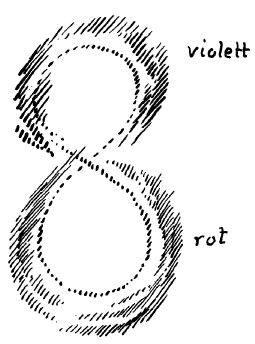 Let us think of this (red) as representing the Earth. We can of course only consider one part of the Earth in connection with this breathing. We shall consider that part in which we ourselves dwell; the conditions are of course reversed on the opposite side of the Earth. We must picture (vorstellen) the breathing of the Earth in such a way that in one region there is out-breathing, and in the opposite region in-breathing; but this we need not consider today.