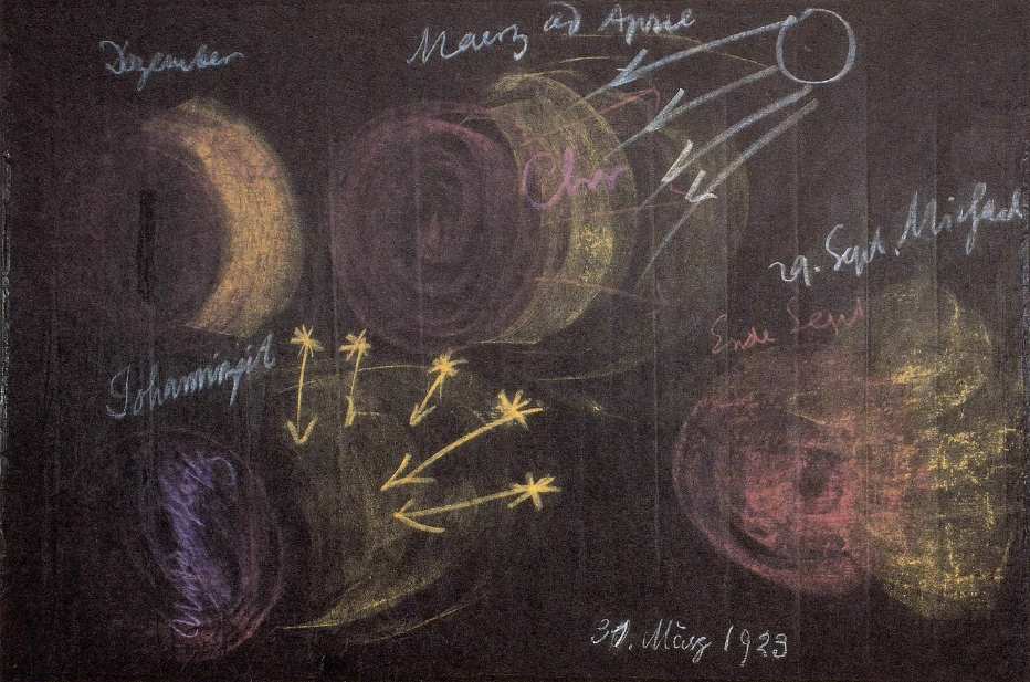 Easter is on the first Sunday after the spring full moon. Man rises with his soul within the full exhalation out into the cosmic, imbues and permeates himself with the star-like, absorbs the breath of the world with the earth-breath itself, permeates himself with the paschal. And with that with which he has begun to permeate himself since the Easter time, he stands most strongly inside at the time of John, must then return with the earth soul and at the same time with his own soulfulness into the earth, but is dependent on Michael standing by his side so that he can penetrate the earthly in the right way after defeating the Ahrimanic through the Michael forces.
