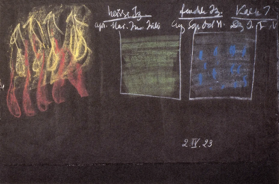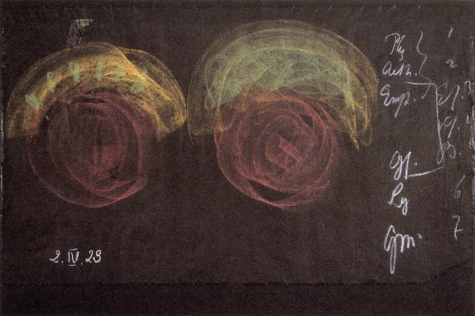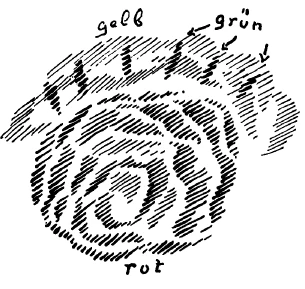 If one looks into the autumnal mood with the ascending spiritual becoming free (yellow), with the, I would like to say, dripping off, wilting sensual (red), then one has the view of the spiritual as such, of the sensual as such.
