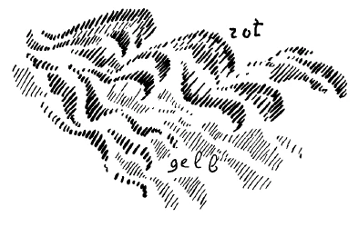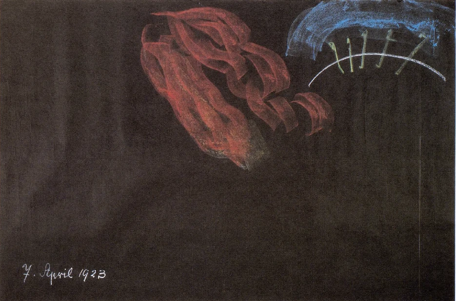 And thus it is that the nightingales and the larks send forth their voices into the universe (red) and that what they thus send forth comes back to them etherically (yellow), for the time during which they do not sing;