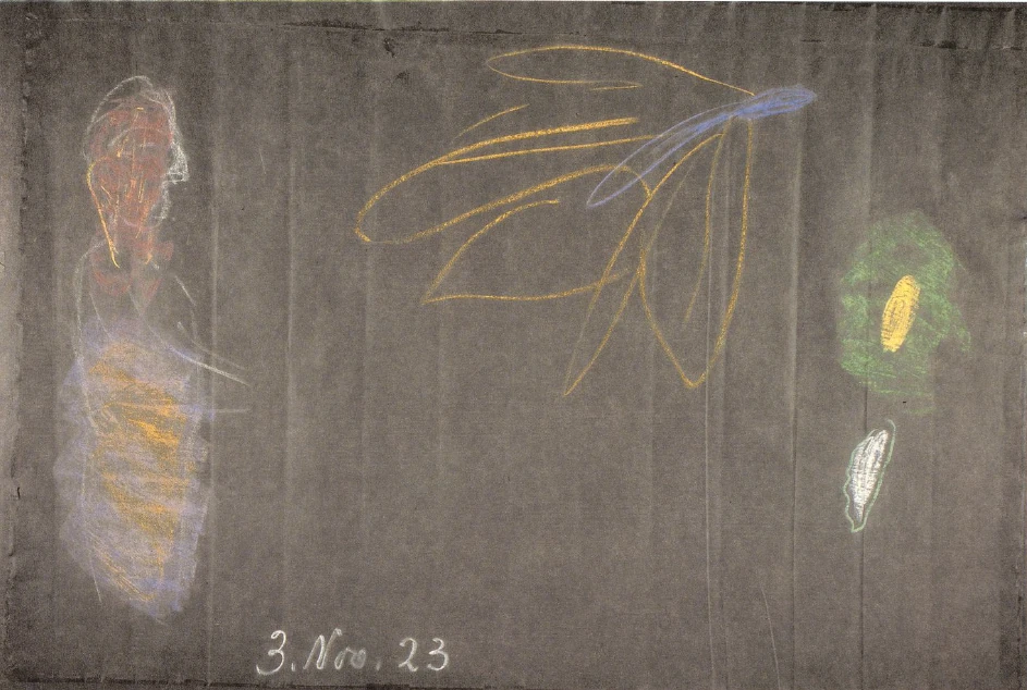 And when we come to the fire-beings, we find that they provide the completing element to the fleeting nature of the butterflies. A butterfly itself develops as little as possible of its actual physical body; it lets this be as tenuous as possible. It is, on the contrary, a creature of light. The fire-spirits appear as beings which complement the butterfly's body, so that we can get the following impression. If, on the one hand, we had a physical butterfly before us, and pictured it greatly enlarged, and on the other side a fire-being—they are, it is true, rarely together, except in the circumstances which I mentioned to you yesterday—then, if these two were welded together, we would get something resembling a winged man, actually a winged man. We need only increase the size of the butterfly, and adapt the size of the fire-spirit to human proportions, and from this we would get something like a winged man.