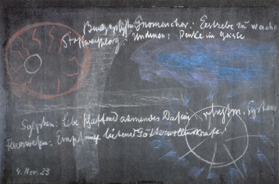 When the gnome-chorus allows its “Strive to awaken” to sound forth, this—only transformed into gnome-language—is the force which is active in bringing about the human bony system, the system of movement in general.