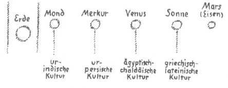 If we now stop for a moment with this development, we can say that man completes the moon existence when he has left the earth, he comes into the Mercury existence, comes into the Venus existence, comes into the sun existence, then it goes on. - We will talk about this later. - Basically, all these things are not just isolated things and processes in the spiritual world, but they are all connected with what happens on the physical earth, and there is a very special connection. That which is moon existence is indeed completely permeated by those great primal teachers of mankind mentioned to you several times today. At a time very far in the past, they went out of earthly existence into the cosmic worlds, into the cosmic colony of the moon. But individual people, initiates in the Mysteries, still had a very lively inner hearing and seeing for what was once there on earth with these original initiates. Thus in the primeval Indian time there was still a very lively knowledge in the Mysteries of the wisdom of the Moon initiates. Precisely that which can still be admired today in the echoes of primeval Indian wisdom came about in this way.
