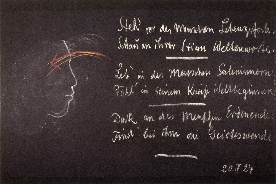 It is out of this awareness that the Christmas Conference was held, for it is an urgent necessity that there should be a place on earth where the Mysteries can be re-established. The Anthroposophical Society must in its further progress become the path to the renewed Mysteries. That, my dear friends, will be one of your tasks: to contribute to this from the right consciousness. For this purpose, however, human life will have to be viewed according to its three stages: according to the stage where one looks into the human being, according to the stage where one strives into the inner being of the human being, according to the stage where one becomes in consciousness as otherwise in outer reality only in death.