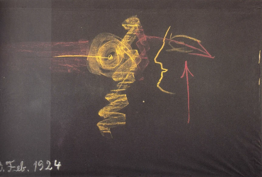A strange impression also arises. It is as if out of a darkness (it is drawn) what comes towards the sleeping human being would stand out, as if there were a darkness behind it, and in this darkness appears - there is no other way to put it - as luminous what is emanating air. What is there in the darkness can be recognized by its essence, by the fact that the daily thoughts leave you and in what flows out of the human being there emerges, as it were, what can be called the ruling world thoughts, the objective thoughts that are creative. The dark, the emanating light, in which the creative thoughts gradually emerge. What is dark there is a darkness that extends beyond the ordinary everyday thoughts, we could say beyond the thoughts of the brain. You get a very precise impression that what you consider to be the most important thing in your physical life on earth becomes darker as soon as you are out of the physical body, and you realize much more intensely than you would expect in ordinary consciousness how these thoughts are dependent on the physical tool, the brain. The brain holds back these everyday thoughts, the ordinary thoughts, as if clinging to itself. Out there you no longer need to think in the same sense as you think in everyday life. Because there you see the thoughts that flow through what you appear to yourself as in the air you breathe. And so the inspired cognition notices how the astral body is in the physical body during waking and begins to carry out the tasks it has to perform in the physical body with the help of the inhaled air; how this astral body, when it is outside during sleep, receives the impressions of its own human being. During waking this world which surrounds us as the horizon on which we stand in the earthly environment, and that which arches above it as the vault of heaven, is our outer world; during sleep that which is within our skin, which is otherwise our inner world, becomes our outer world. Only that we first feel what flows towards us in the air we breathe. We initially have a perceived outer world.