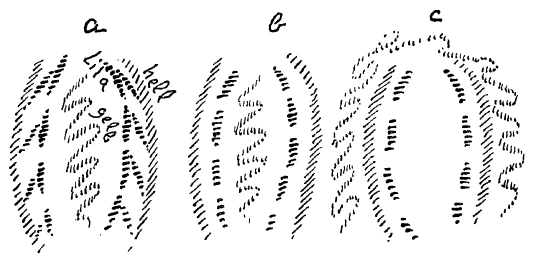 Let us think, first, of man's ordinary, everyday condition. Take this (a) to represent the physical body (inner curves), this the etheric body (outer curves) and this the soul and spirit (short branching lines).