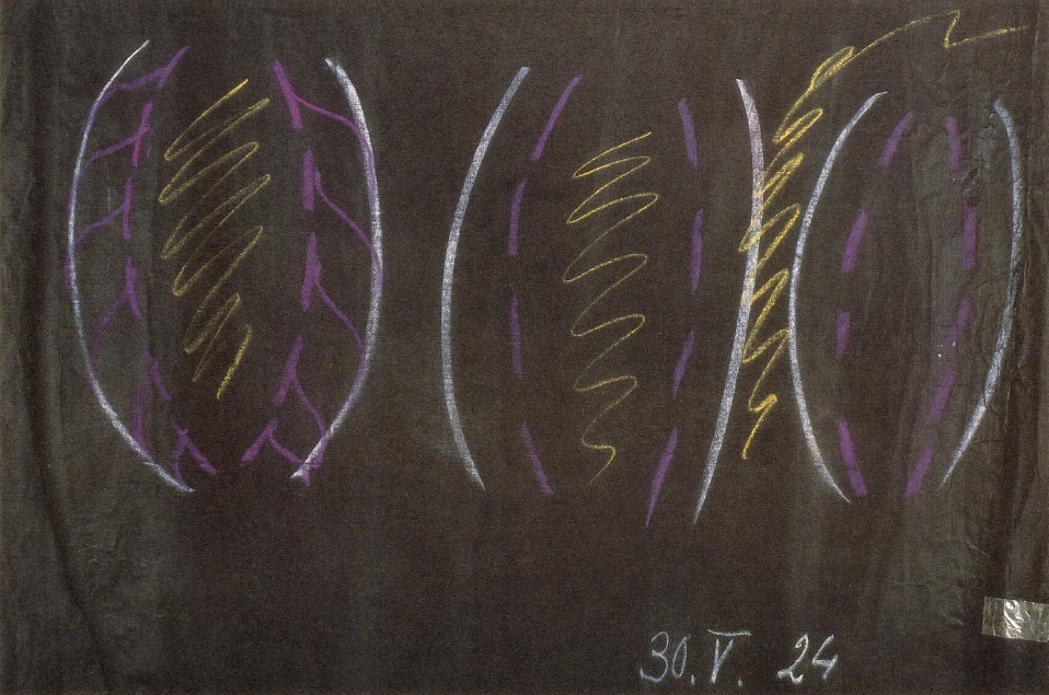 This is the case for imaginative cognition, but not for inspired cognition. Inspired cognition, which occurs with empty consciousness, as I have explained to you, this inspired cognition has the effect that man is outside his physical body with his spiritual-soul. This is therefore (drawing c) the spiritual-soul outside the physical and etheric body.