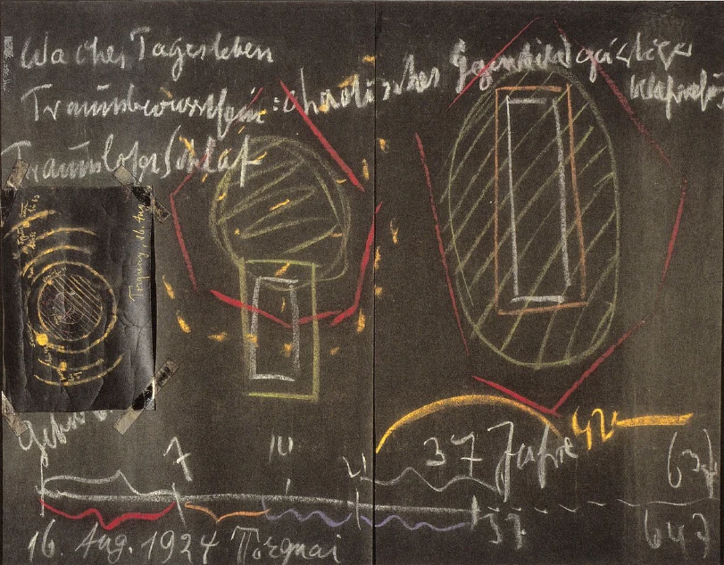 How is it with the initiate? The initiate is in a position, when he comes out of there (the drawing is pointed to), to immediately suppress all the reminiscences, all the aftershocks from the physical body and the etheric body. So he suppresses what is there from the physical and etheric body. In addition, through meditation and concentration and through the development of empty consciousness, he has the possibility of having soul eyes, soul ears. He now does not perceive what is going on within him, but what is going on externally in the spiritual world. Instead of dreams, perceptions of the spiritual world appear. So that we can say: Dream consciousness is a chaotic counter-image of spiritual perceptions.