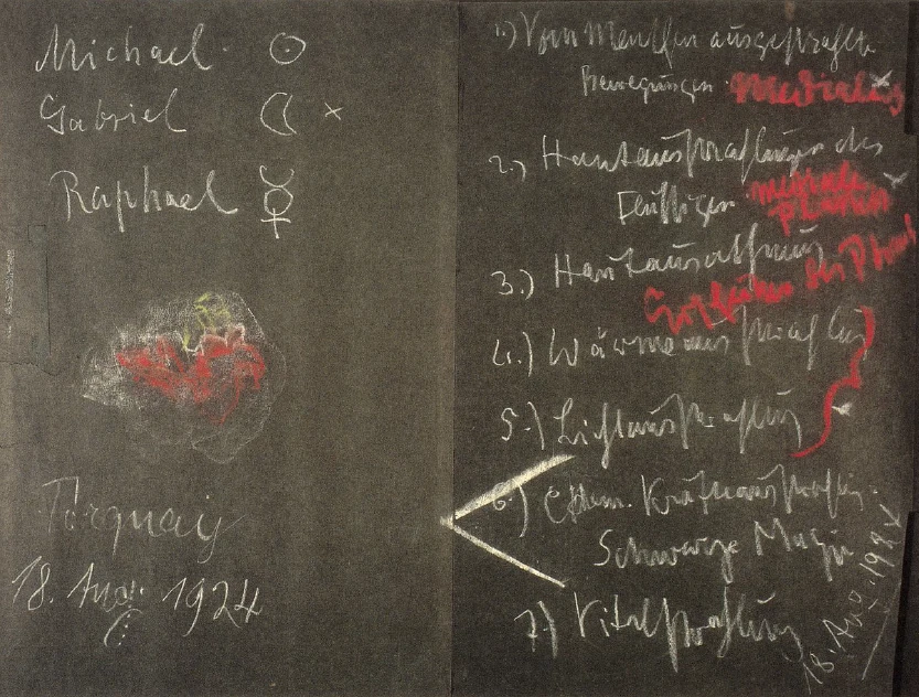 [In a note book of Rudolf Steiner, under the date of 18th August, 1924 (“Morning lecture, Torquay”) the following entry was made in connection with the Archangel epochs: