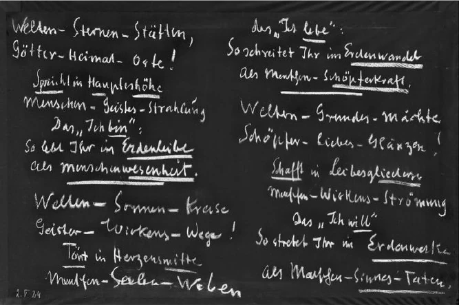 And we take up these last two lines, spoken by the angel, into our meditative envisioning, as an instruction. [Now the first section was written on the board.]