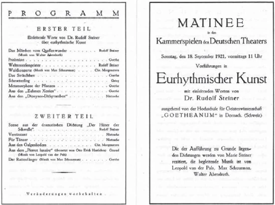 A series of performances took place in Berlin: on September 17 and 18, 20, 22, 28 and 29, 1921; in between a performance in Dresden on September 25. However, Rudolf Steiner was probably only able to give a speech (not available) at the performance in the Deutsches Theater.