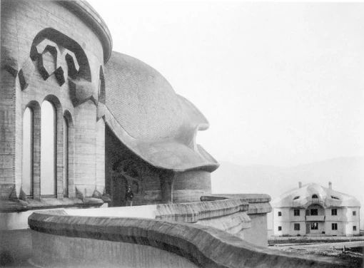 Given that we could not build the structure in Munich due to the narrow-mindedness of the local artistic community, but had to erect it here on the Dornach hill, it must be seen as a stroke of good fortune that, by approaching the hill, this double-domed structure can now really be appreciated. For it is truly not for external reasons that this building has become a double-domed structure. This Goetheanum has become a double-domed structure – a building composed of a larger and a smaller dome – to show that something is to be revealed to contemporary culture and that something is to be received. That which emerges from the depths of spiritual life is represented by the small dome, and the fact of receiving is represented by the large dome. And I think that fate has done well that the one who approaches this hill in Dornach can already have the feeling, through the way in which this double dome rises above the hill, that something new is being added to human development, but something that can also have an effect on human development at the same time. The first pictures we will show you this evening should demonstrate to what extent this is the case.