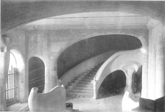 There we saw the same thing again, in more detail. You can see here how an attempt has been made to replace the conventional mathematical-dynamic pillar with something organic, which in its form has the character of support, of support through a force that comes from the elementary forces of the earth and is precisely suited to the distribution of the load that is to be supported at this point in the way in which it shapes its forms. Of course, I am well aware of the many objections that can be raised against such designs from the point of view of traditional architecture. But it is high time that an attempt was made to replace the usual dynamic-mechanical building concepts with an organic building concept that is based not on dynamics and mechanics but on organic principles.