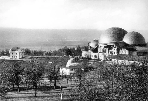 [ 10 ] Whoever approaches the "Goetheanum" from any direction will already find in its outer form that it is, without falling into abstract symbolism or arid allegory, a revelation of the particular spiritual life which wants to realise itself here. This spiritual life is more concerned with the human being as an expression of the world, a revelation of the world, than earlier stages of our human civilisation have been. This is expressed in the way the building is divided into two parts.