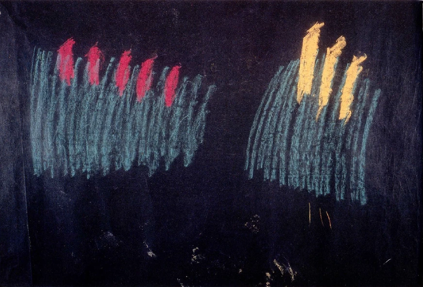 Let us place ourselves in blackness, absolute black around us, black darkness—in black darkness no physical being can do anything. Life is driven out of the plants when they become charcoal, carbon or coal. Thus black shows itself to be foreign in life, hostile to life. We see this in carbon, for when plants are carbonized they turn black; Life, then, can do nothing in blackness. Soul—the soul slips away from us when awful blackness is within us. The spirit, however, flourishes; the spirit can penetrate the blackness and make its influence felt within it. We may therefore say that in blackness—and if we endeavour to investigate the art of black and white, light and shade on a surface—we shall return to this later—then, by drawing with black on a white surface we bring spirit into the white surface by means of the black strokes; in the black surface the white is spiritualized. The spirit can be brought into the black. It is, however, the only thing that can be brought into black. Therefore we obtain the formula: