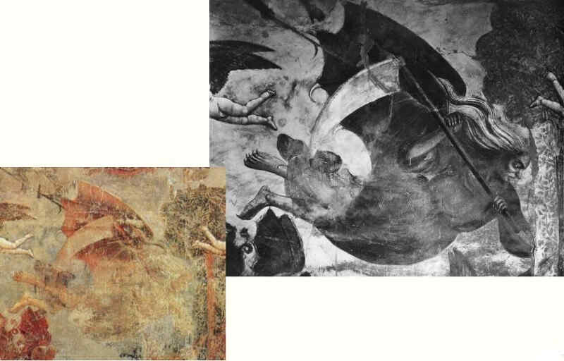 The image is included here so that you can see how the allegorical element has had a lasting effect. I have previously drawn attention to how the allegorical element intervenes in Giotto's work. This allegorical element continues to have an effect; and this is what remains, more or less, of the earlier, more spiritual conception. Something remains that is abstract allegory, found in particular in the paintings of the Camposanto in Pisa, which are magnificent in many respects. It belongs to an earlier time, but I wanted to show this allegorical element as something that continues to have an effect, even later. So that it lives on in people's feelings: the spiritual, spiritually naturalized, soulfully naturalized; no longer being able to grasp the whole, but rather the compositional; and the allegorical continues to have an effect. — Another allegory from this image from the Camposanto: