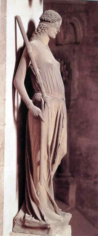 A favorite representation at that time. Last time we saw the corresponding figure from the Cathedral at Strasburg. The figure of the Church is conceived with a certain inner freedom. Her soul is free, she gazes freely far into the world, with wisdom.