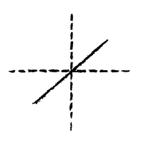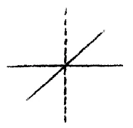 The third mode is the activity of walking, an activity primarily of the limb system. Let us consider the activities of seeing, arm movement, and walking from a scientific point of view. In general, what you see with both eyes presents itself to you in two dimensions and these dimensions are independent of any mental activity. I can represent these two dimensions by these perpendicular coordinates. I will draw these as dotted lines for the purpose of later references I wish to make. With these dotted lines representing two dimensions, I want to express the fact that our mental activity of comprehension is not really involved when we look only at these two dimensions.