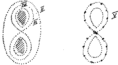 Soll ich ebenso, wie ich die urpersische Weltanschauung Ihnen charakterisiert habe durch diese Linie (vorhergehende Zeichnung), soll ich Ihnen die des dritten Zeitalters charakterisieren, so müßte ich sie durch diese Linie charakterisieren (in das Oval wird eine Lemniskate gezeichnet, siehe S. 106 oben).